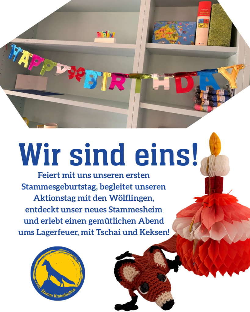 Wir sind ein Jahr alt … Wir haben ein eigenes Stammesheim … Es gab eine Versprechensfeier mit Halstuchverleihung … und drumherum einen fantastischen Aktionstag mit unserer Meute!